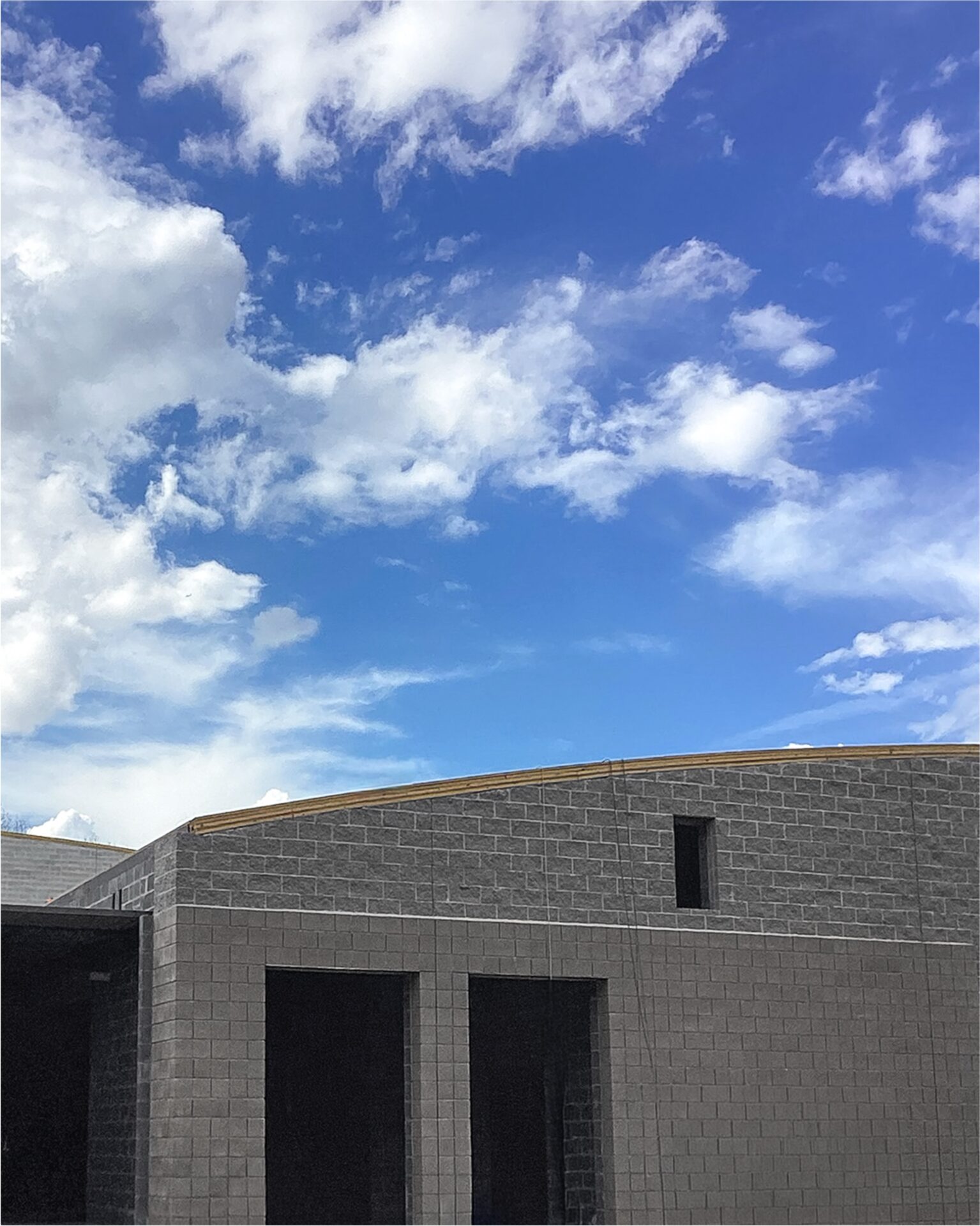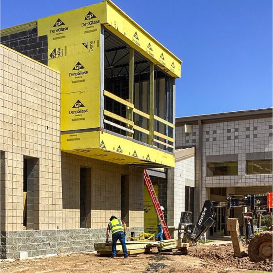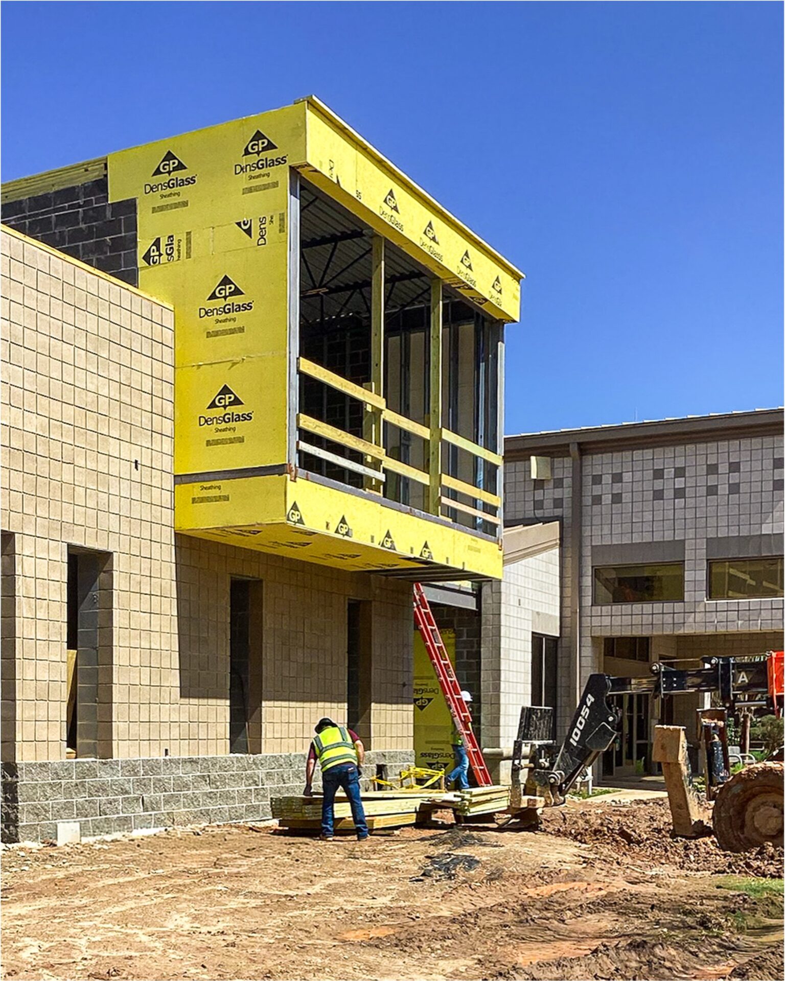 The expansion includes a new gym, classrooms, a senior lounge, a serving kitchen, an outdoor patio, and comprehensive civil site improvements.