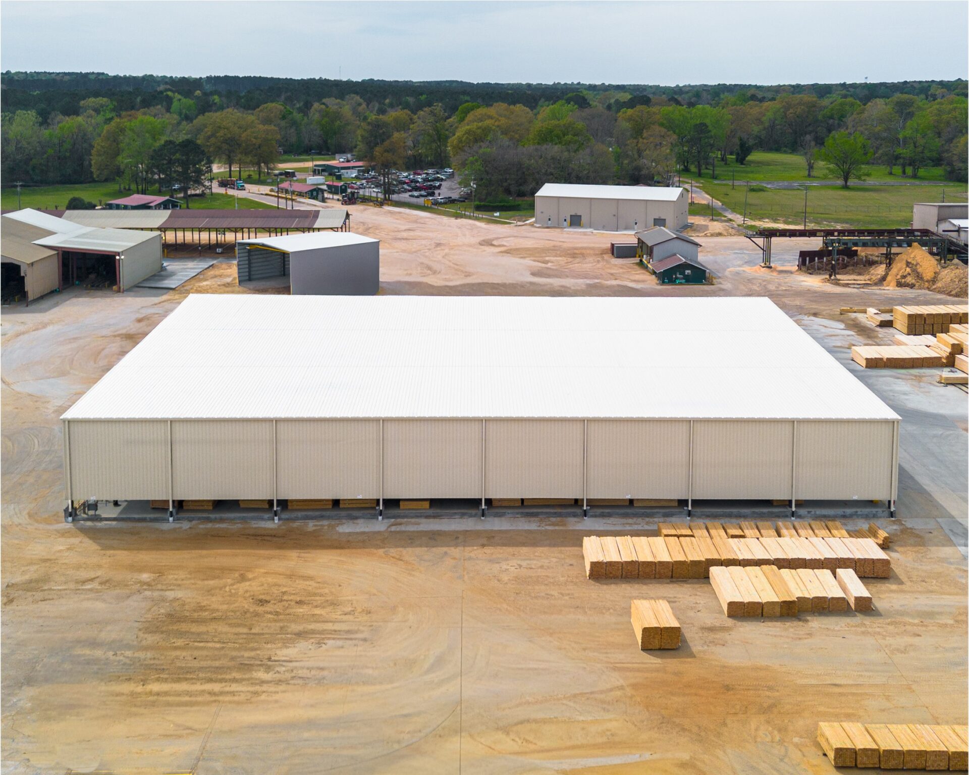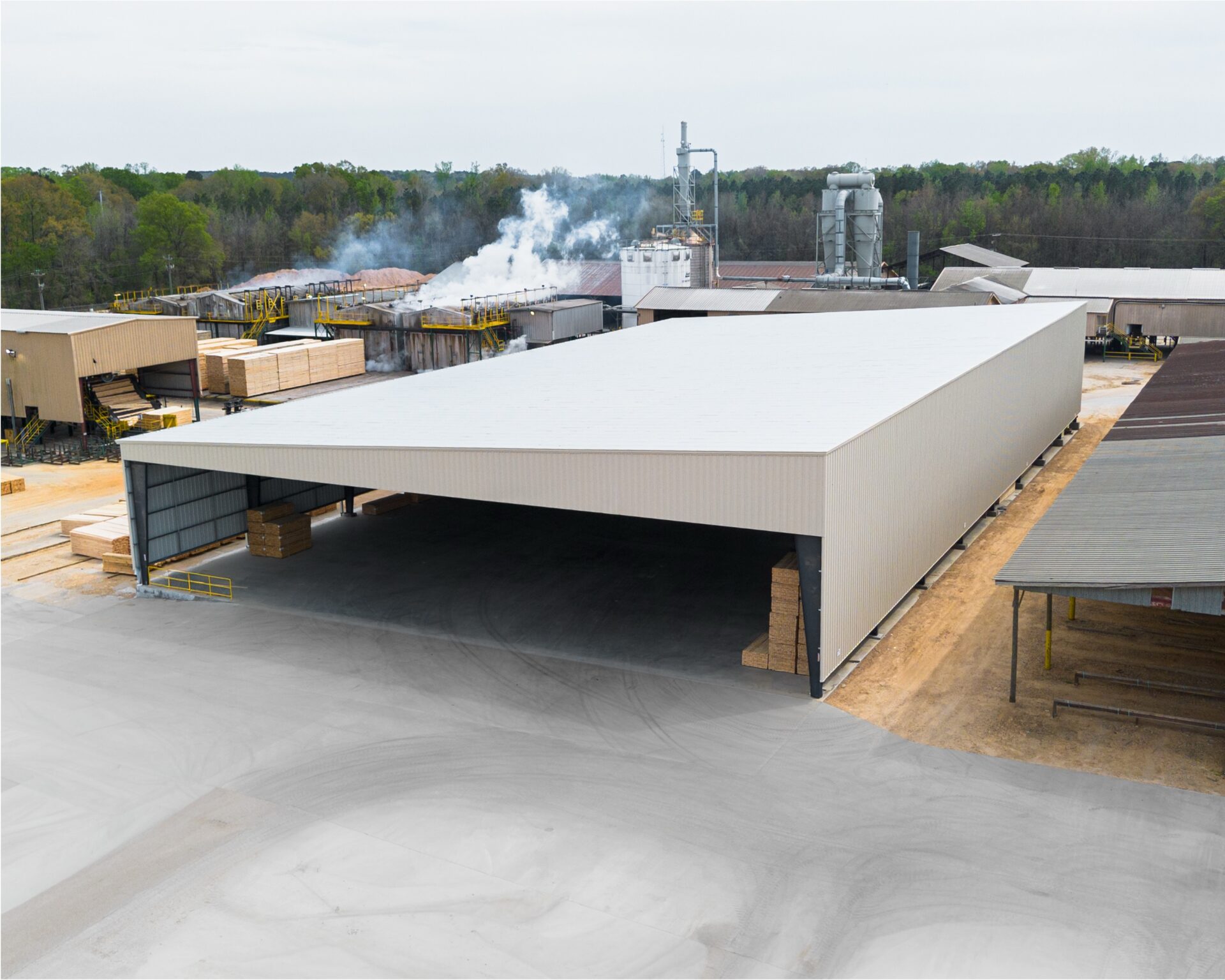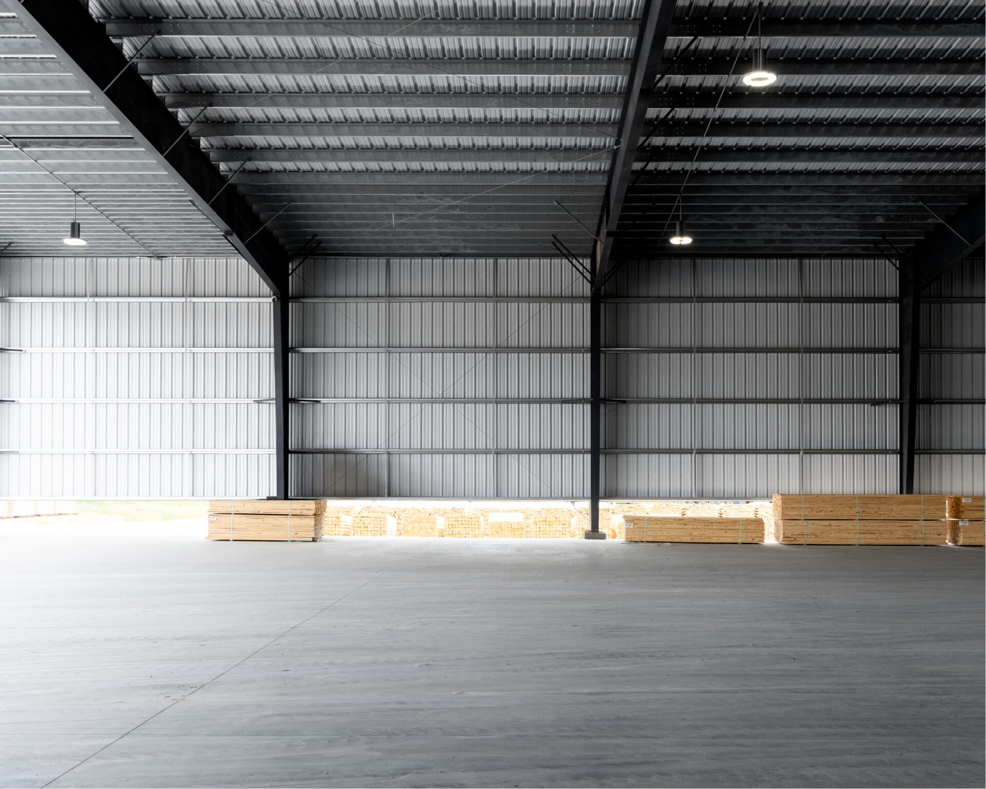 This 28,829-square-foot lumber shed was built to support the storage of finished lumber and is one of three structures Cooper Tacia completed as part of this project. With its large footprint and open layout, the building is designed to support efficient operations while providing durable, functional space for Hood Industries.