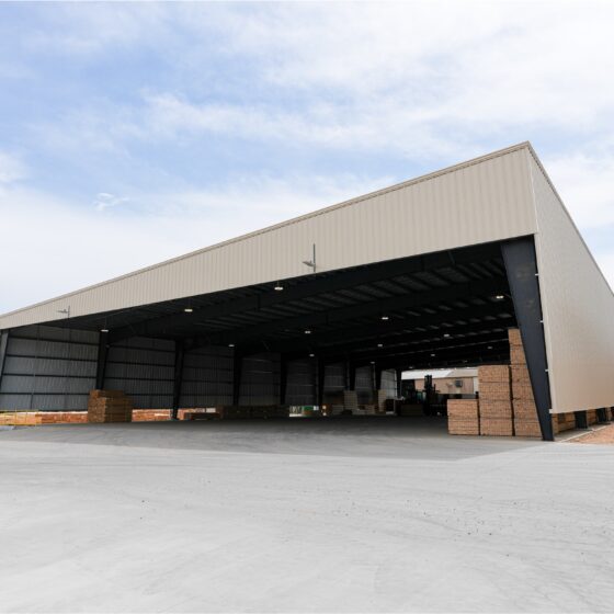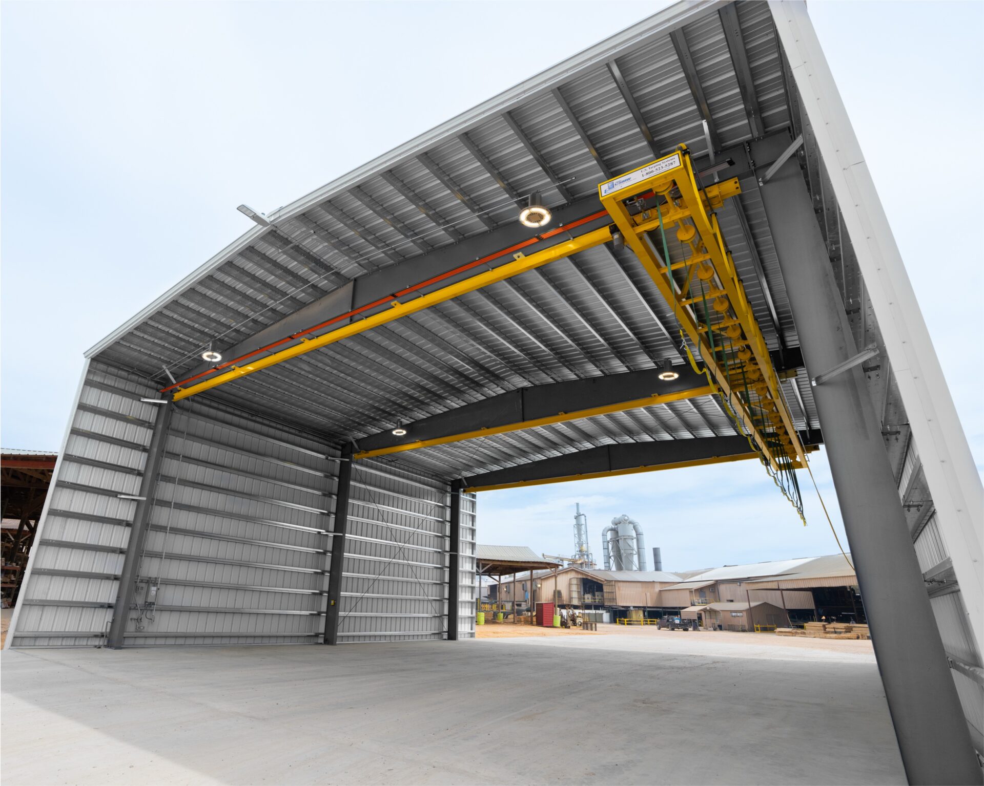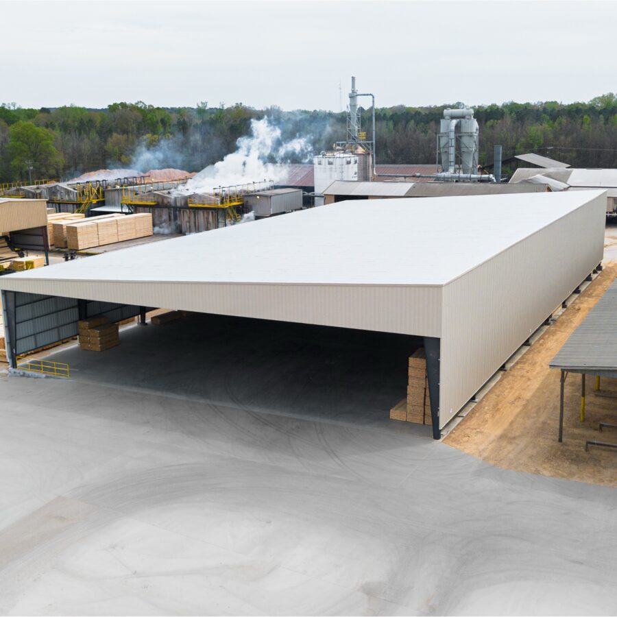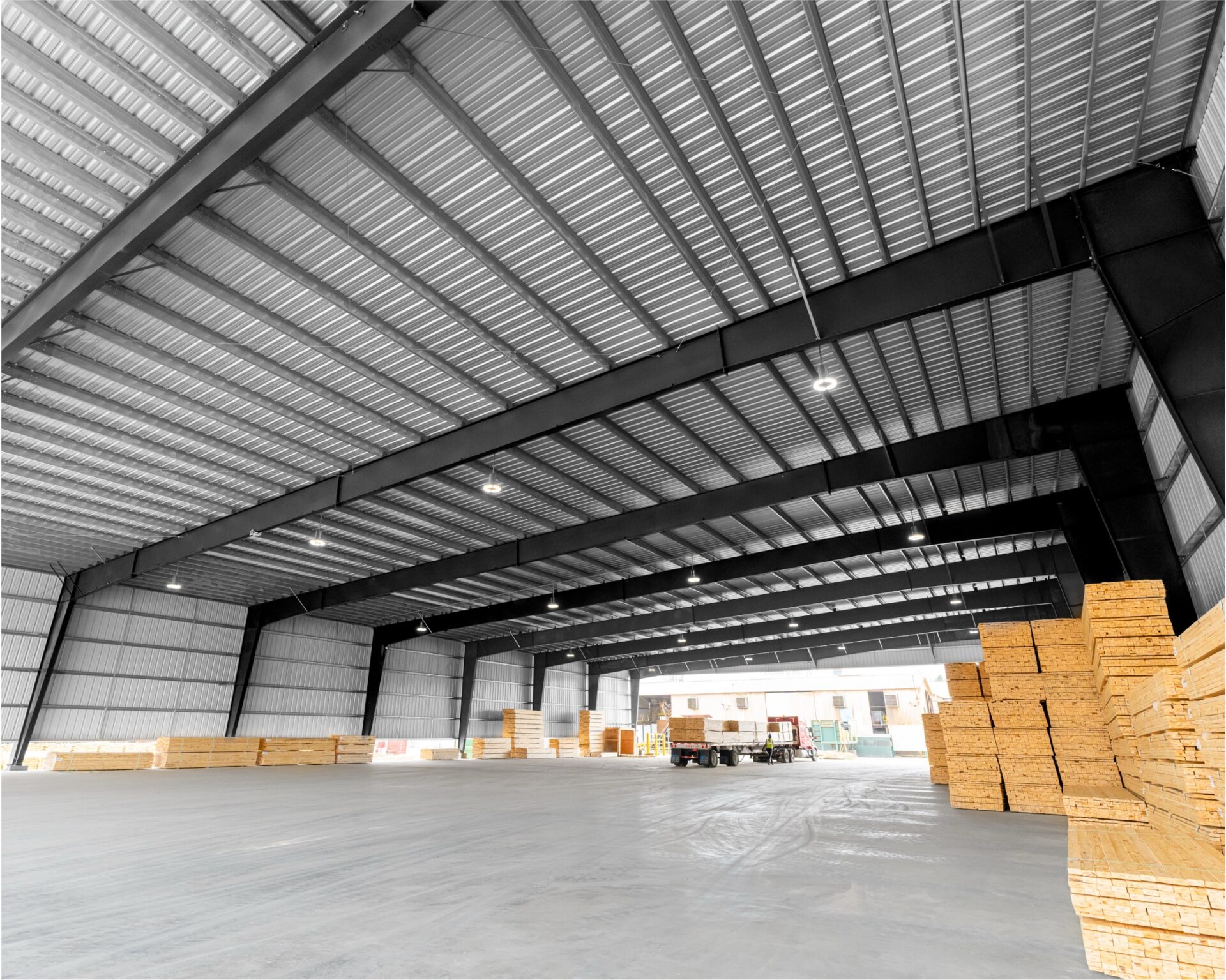 This 28,829-square-foot lumber shed was built to support the storage of finished lumber and is one of three structures Cooper Tacia completed as part of this project. With its large footprint and open layout, the building is designed to support efficient operations while providing durable, functional space for Hood Industries.